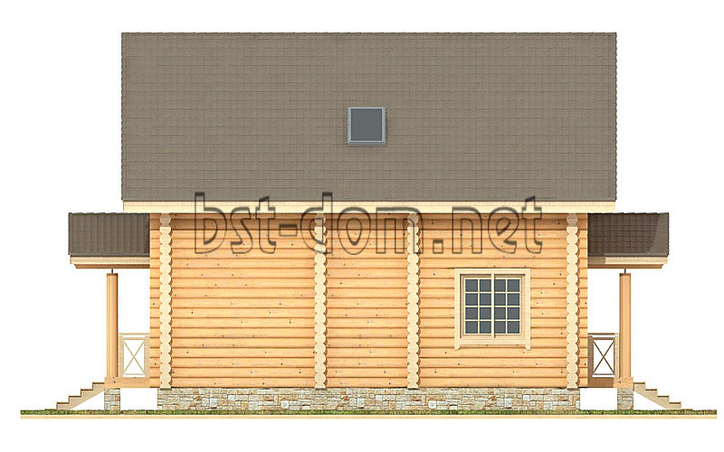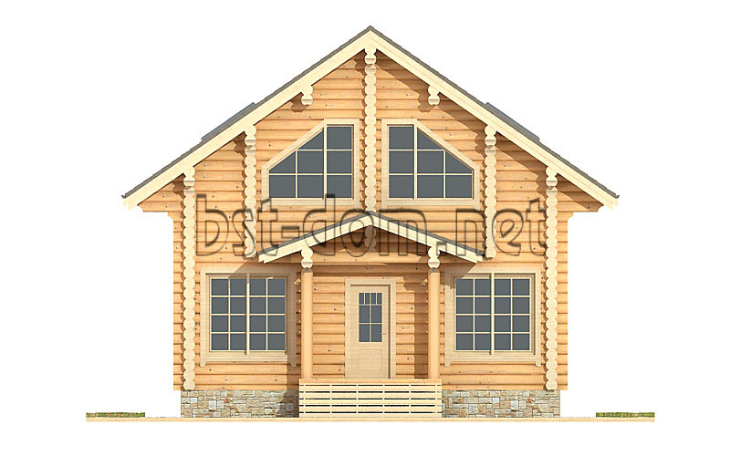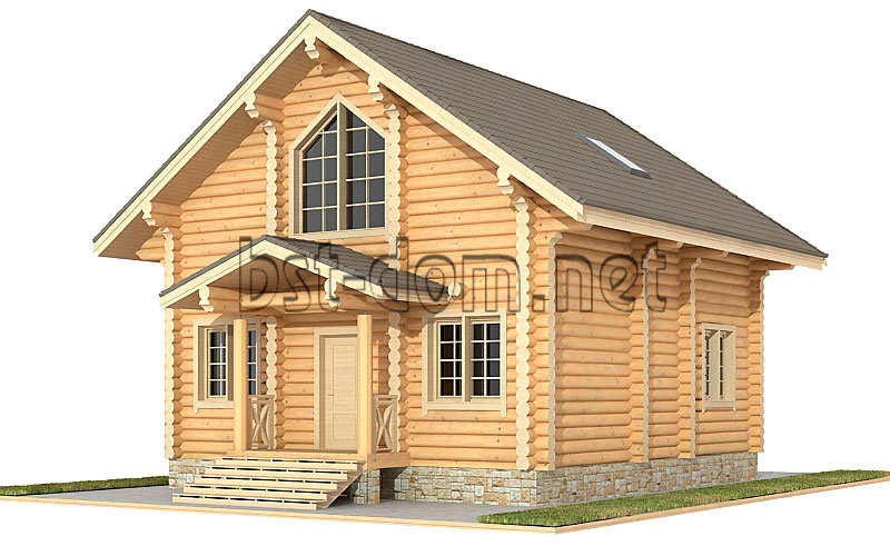 The price without finishing (the first stage) includes the cost of materials and work on the construction of a foundation (screw), a log from a log of natural moisture with beams overlappings, and a temporary roof. The price for turnkey finishing includes additionally the cost of materials and works for the installation of windows (plastic with double-glazed windows), doors (wooden paneled), floors (OSB 12mm, two layers of vapor barrier, insulation 150mm, density 35, the black floor), finishing ceiling clapboard, roofing (vapor barrier 2 layers, heater 150mm., metal 0.45mm). A house without finishing can also be ordered under a permanent roof. Variants of exterior decoration and interior are presented on page Finishing work, interiors.